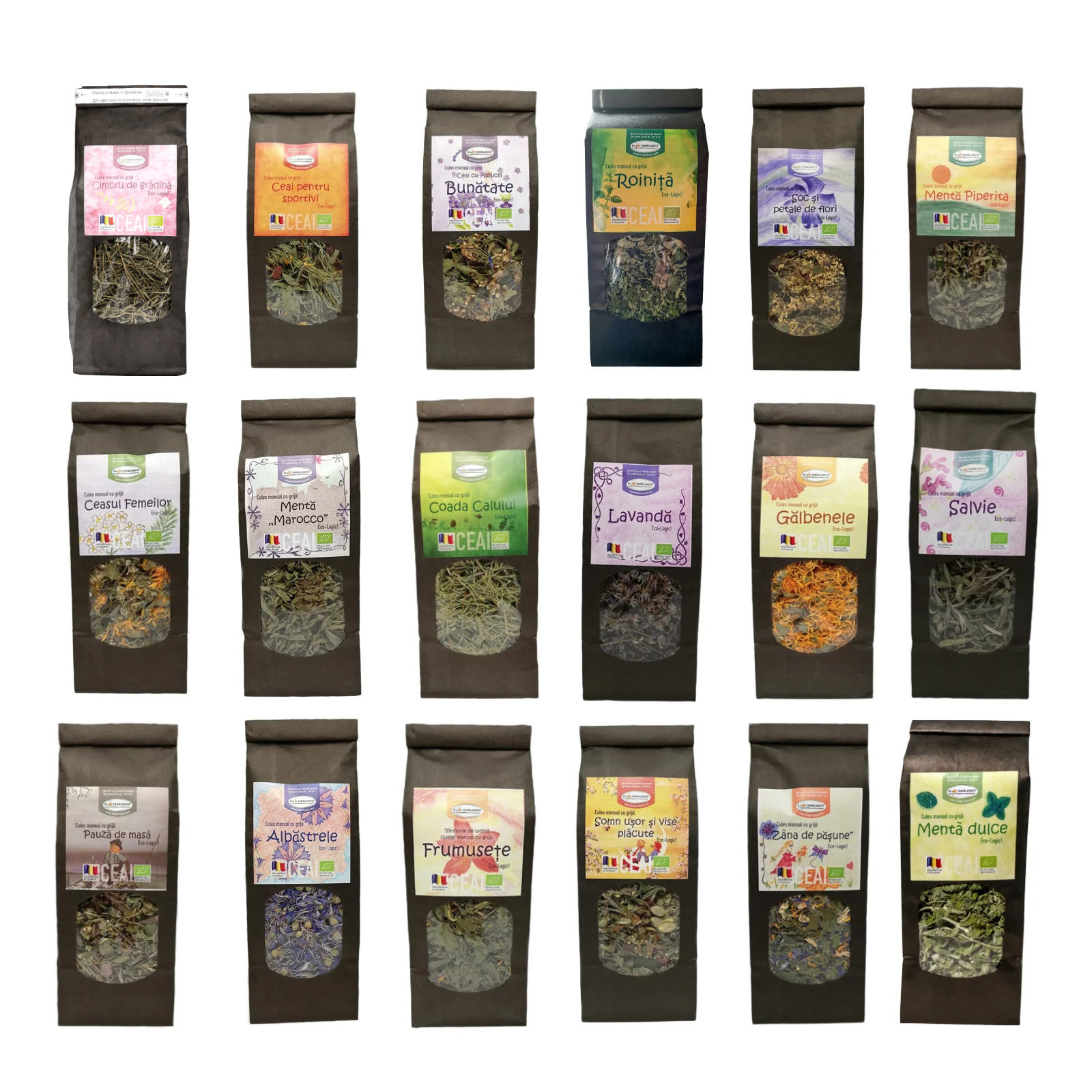 Sortimentul de ceaiuri ECOLOGIC BioFarmland oferă o selecție diversificată de 18 ceaiuri BIO, cultivate ecologic în România, pentru o experiență completă de gusturi și beneficii naturale.